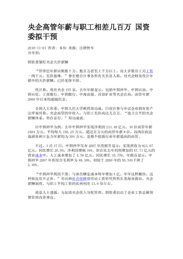 央企高管年薪與職工相差幾百萬 國資委擬干預(yù)