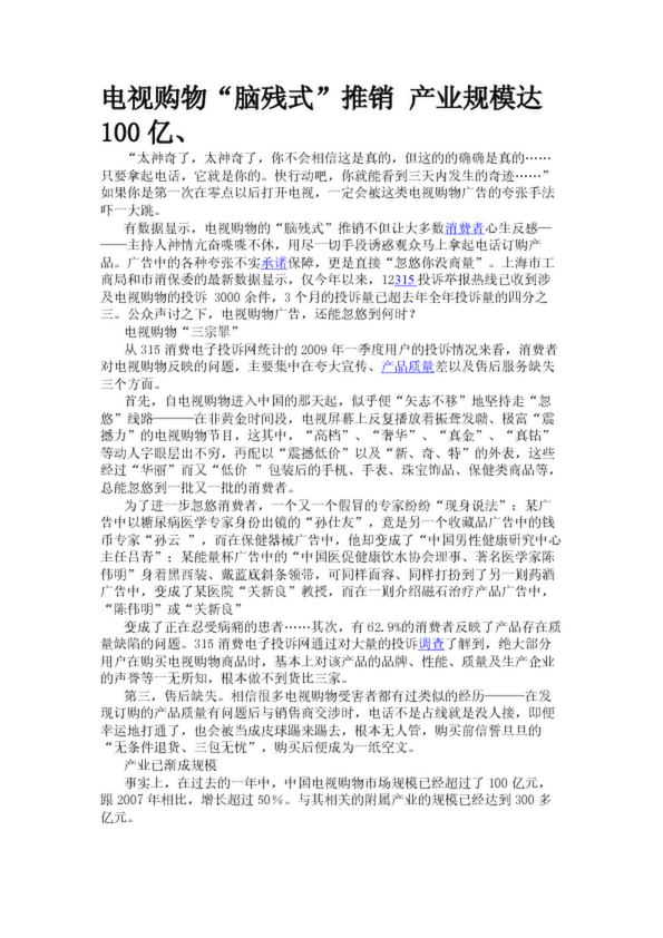 電視購(gòu)物“腦殘式”推銷 產(chǎn)業(yè)規(guī)模達(dá)100億