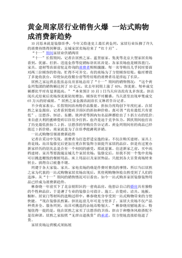 黃金周家居行業(yè)銷售火爆 一站式購物成消費(fèi)新趨勢