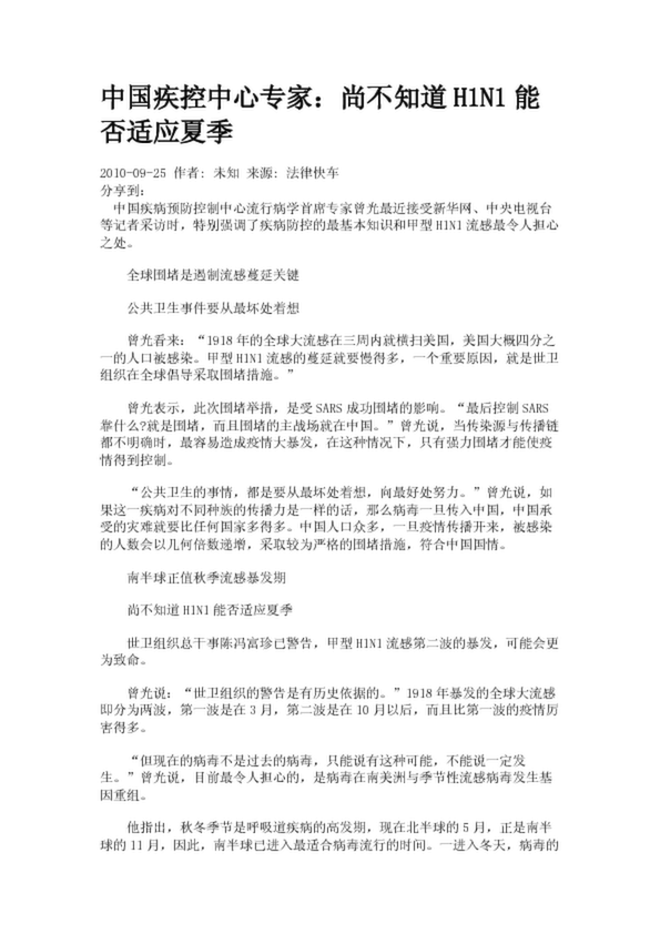 中國疾控中心專家:尚不知道H1N1能否適應(yīng)夏季