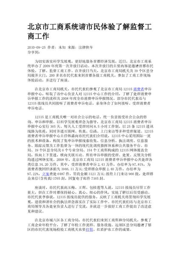 北京市工商系統(tǒng)請市民體驗(yàn)了解監(jiān)督工商工作