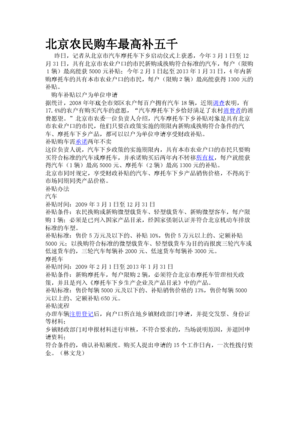 北京農(nóng)民購(gòu)車(chē)最高補(bǔ)五千
