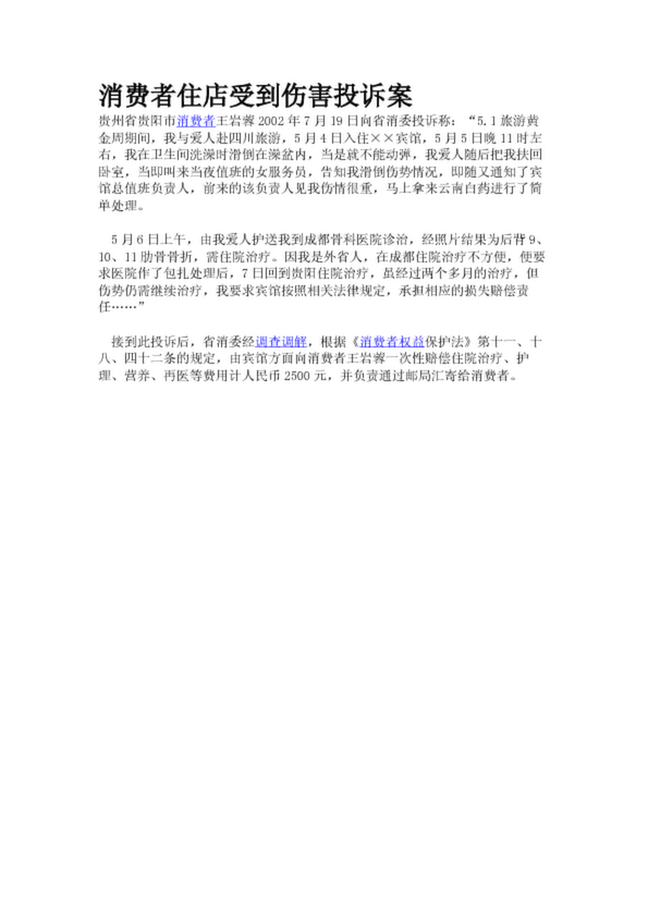 消費者住店受到傷害投訴案