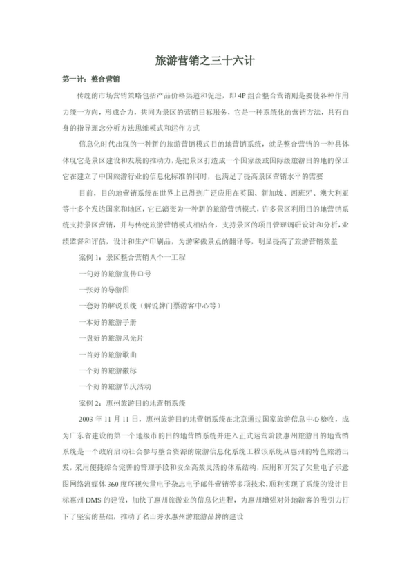 為加快旅游國際化步伐,把張家界建設(shè)成為世界旅游目的地,特提出以下三十六計對策措施供決策部門參考。 第一計: 傳統(tǒng)的市場營銷策略包括產(chǎn)品價格渠道和促進(jìn),即 4P 組合整合 營銷則是要使各種作用力統(tǒng)一方向,形成合力,共同為景區(qū)的...
