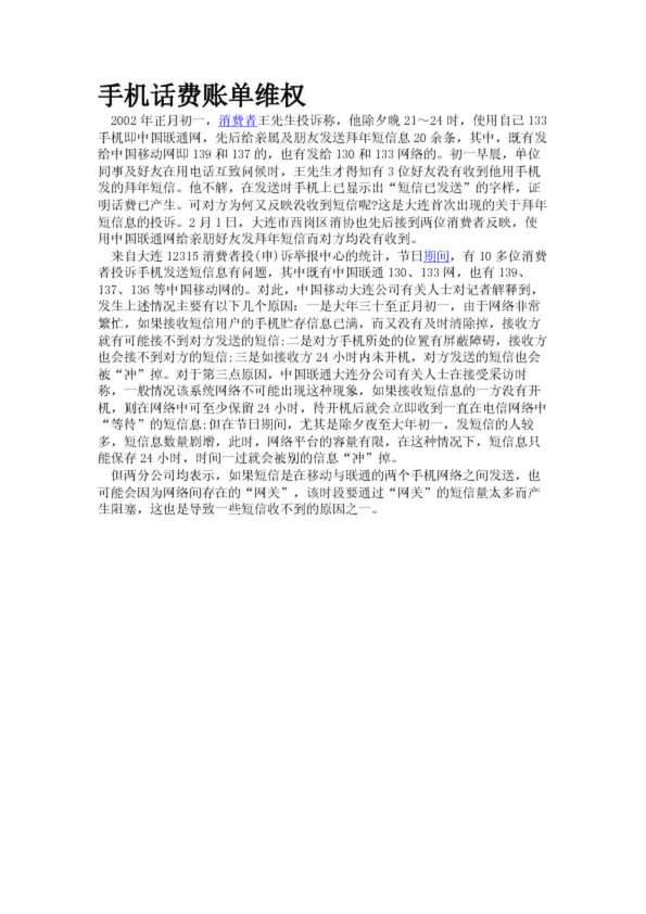手機話費賬單維權(quán)