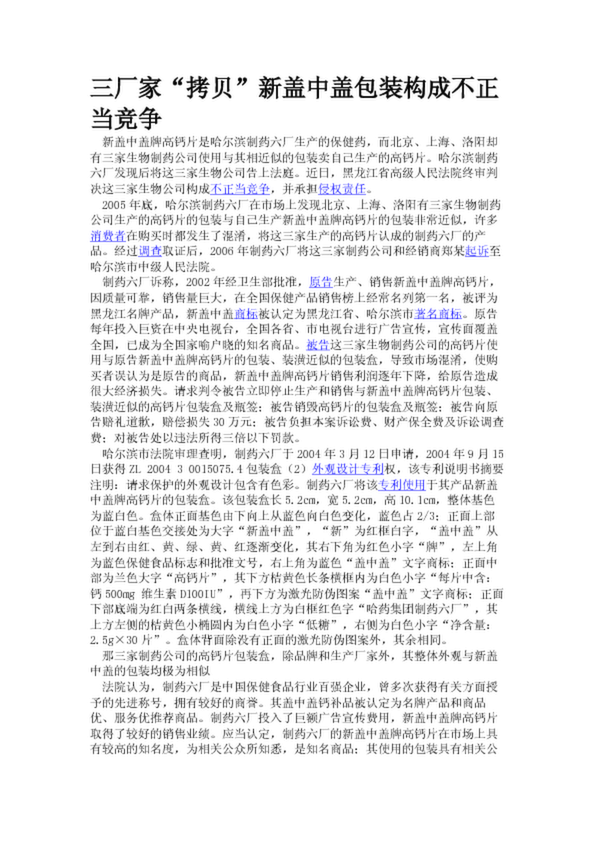 三廠家“拷貝”新蓋中蓋包裝構(gòu)成不正當(dāng)競(jìng)爭(zhēng)