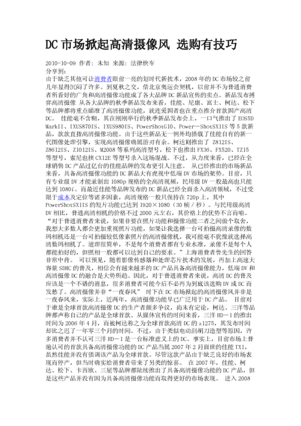 DC市場(chǎng)掀起高清攝像風(fēng) 選購有技巧