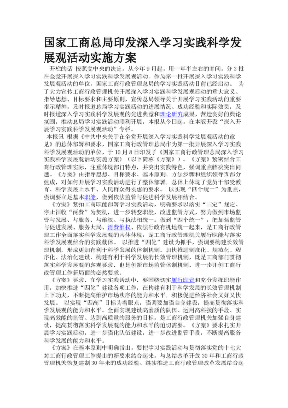 國家工商總局印發(fā)深入學(xué)習(xí)實(shí)踐科學(xué)發(fā)展觀活動實(shí)施方案