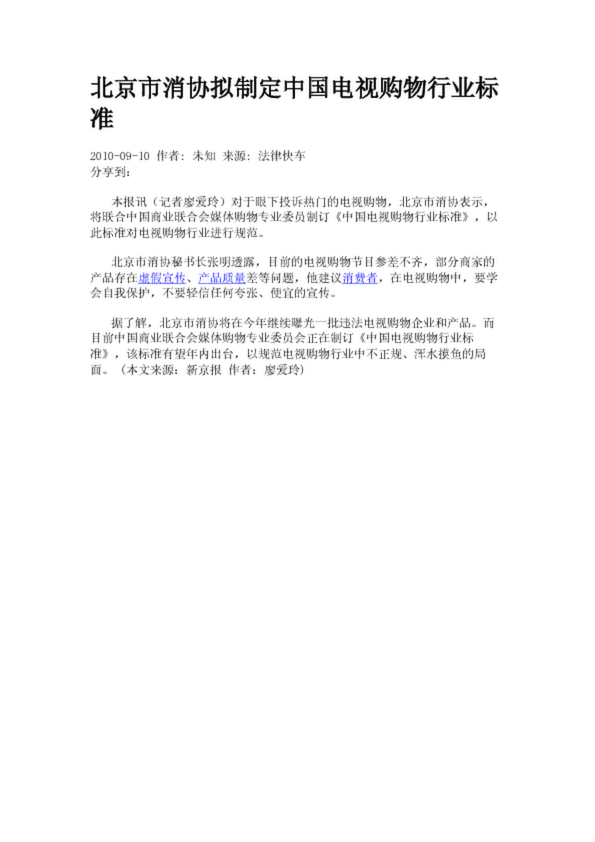 北京市消協(xié)擬制定中國電視購物行業(yè)標(biāo)準(zhǔn)