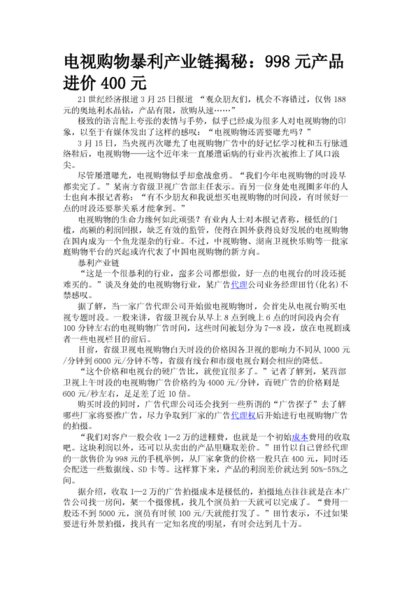 電視購物暴利產(chǎn)業(yè)鏈揭秘:998元產(chǎn)品進(jìn)價(jià)400元