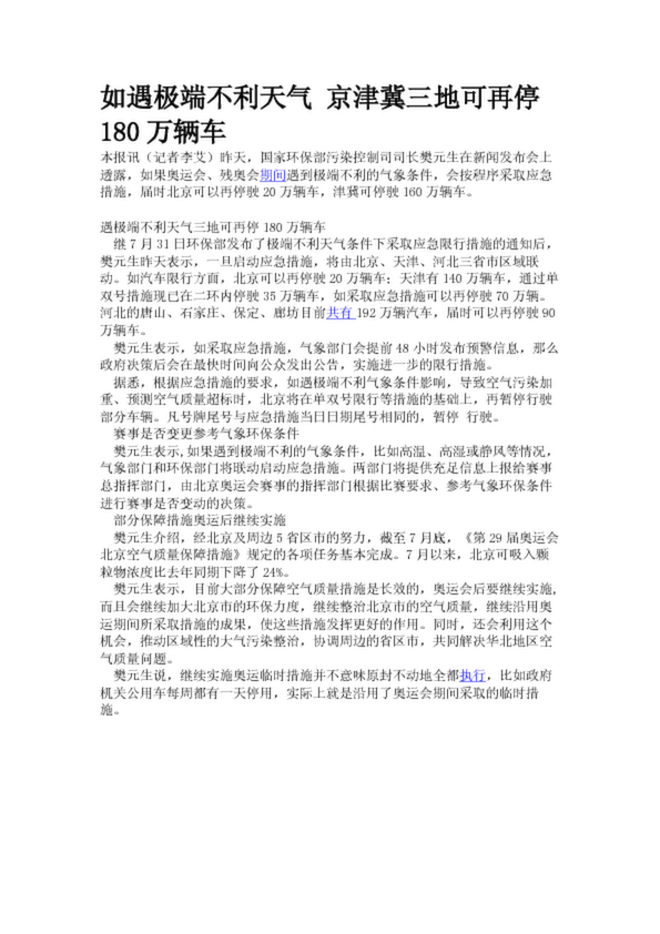 如遇極端不利天氣 京津冀三地可再停180萬輛車