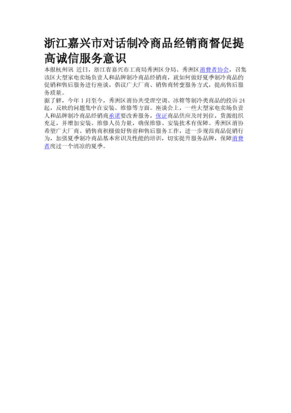 浙江嘉興市對話制冷商品經(jīng)銷商督促提高誠信服務意識
