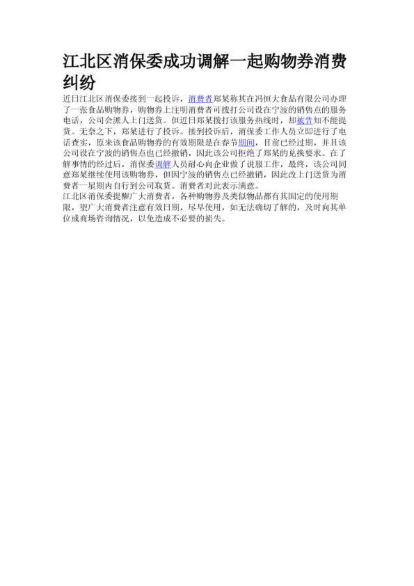 江北區(qū)消保委成功調(diào)解一起購物券消費糾紛