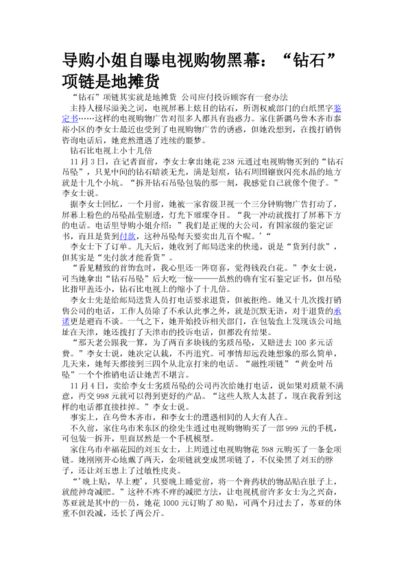 導(dǎo)購小姐自曝電視購物黑幕:“鉆石”項鏈是地攤貨