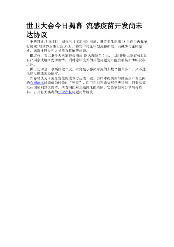 世衛(wèi)大會今日揭幕 流感疫苗開發(fā)尚未達(dá)協(xié)議
