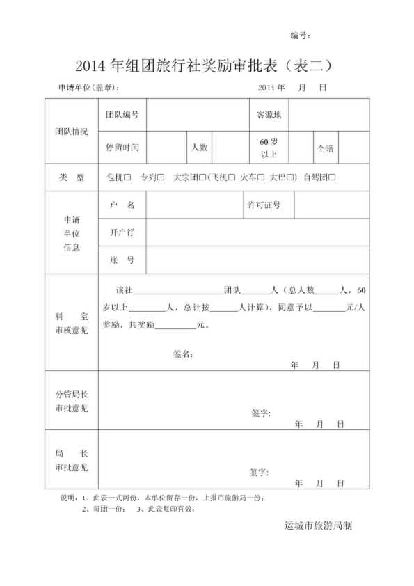 2014年組團(tuán)旅行社獎(jiǎng)勵(lì)審批表