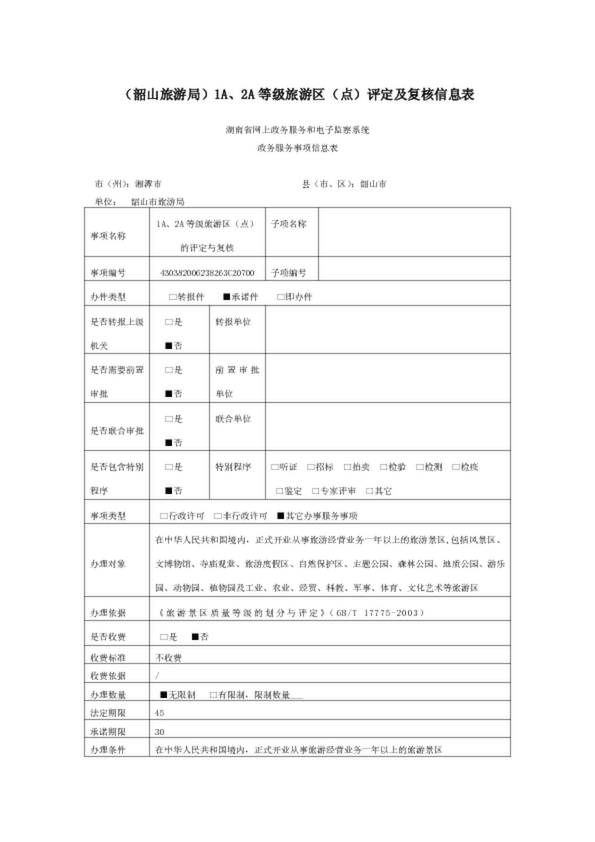 (韶山旅游局)1A、2A等級旅游區(qū)(點)評定及復(fù)核信息表