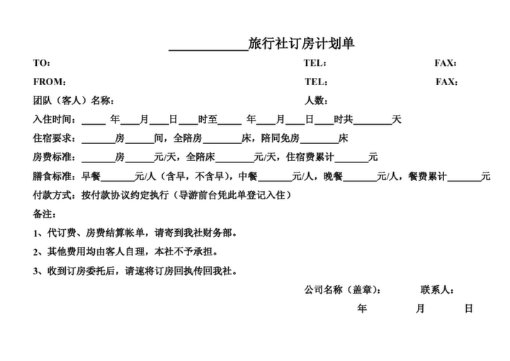 旅行社計調(diào)-訂房計劃單