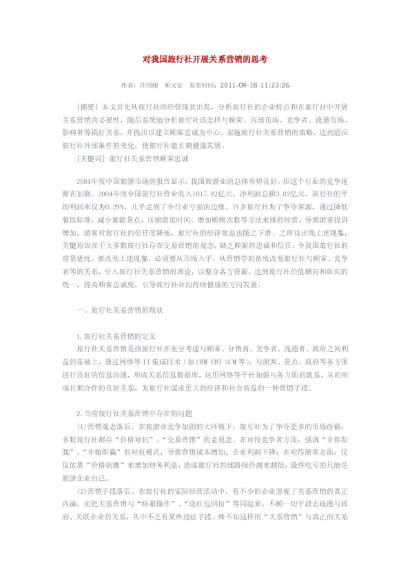 本文首先從旅行社的經(jīng)營現(xiàn)狀出發(fā),分析旅行社的企業(yè)特點(diǎn)和在旅行社中開展關(guān)系營銷的必要性,隨后系統(tǒng)地分析旅行社該怎樣與顧客、內(nèi)部市場、競爭者、流通市場、影響者等搞好關(guān)系,并提出以建立顧客忠誠為中心、實施旅行社關(guān)系營銷的策略,達(dá)到適應(yīng)旅行社外部條件的變化,使旅行社能長期健康發(fā)展.