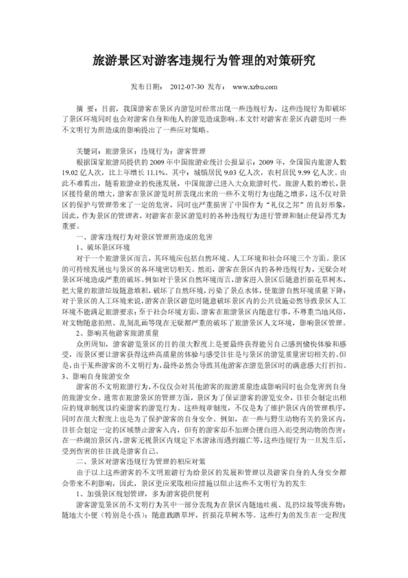 旅游景區(qū)對游客違規(guī)行為管理的對策研究