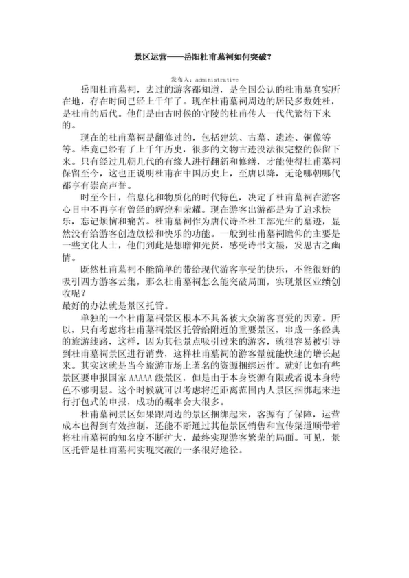 景區(qū)運營——岳陽杜甫墓祠如何突破?
