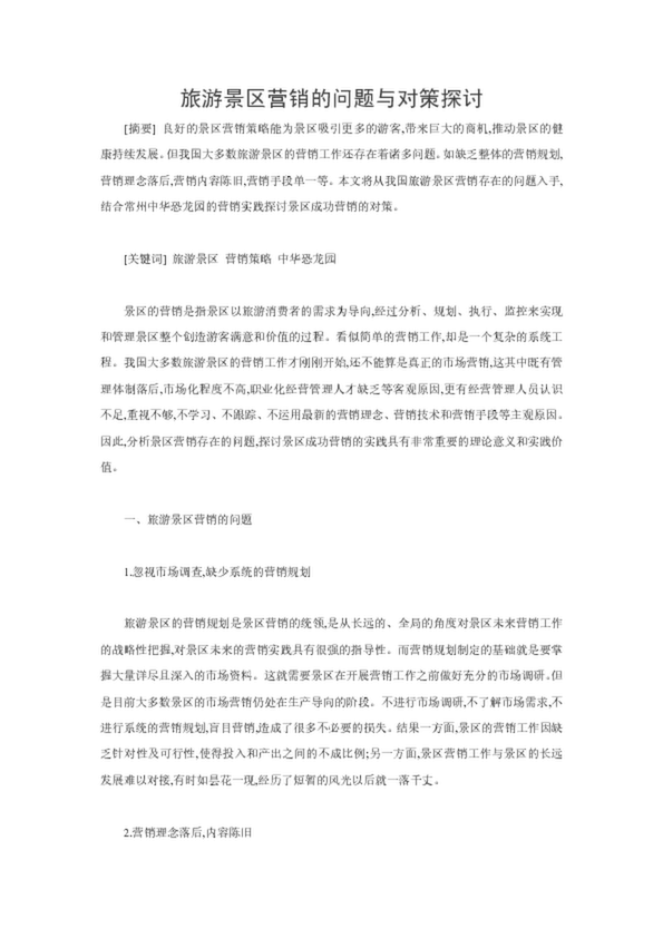 旅游景區(qū)營銷的問題與對策探討