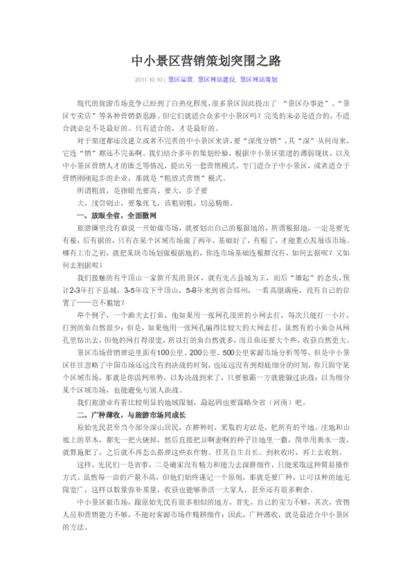 中小景區(qū)營銷策劃突圍之路