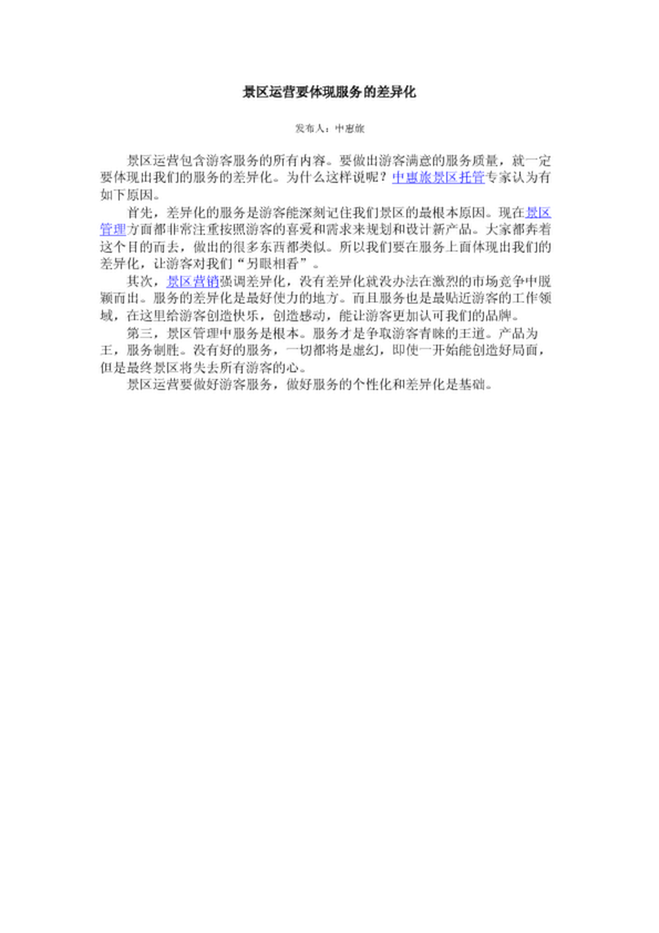 景區(qū)運(yùn)營要體現(xiàn)服務(wù)的差異化