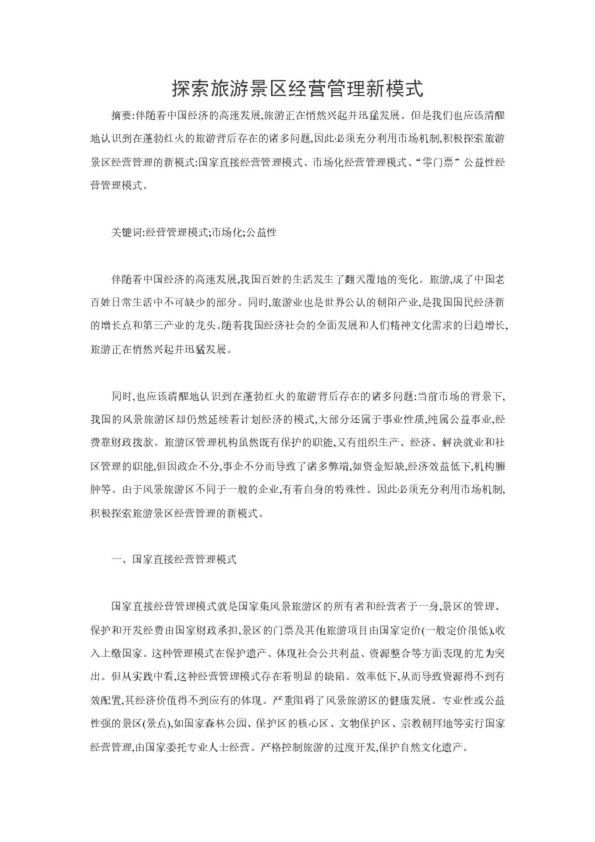 探索旅游景區(qū)經(jīng)營管理新模式