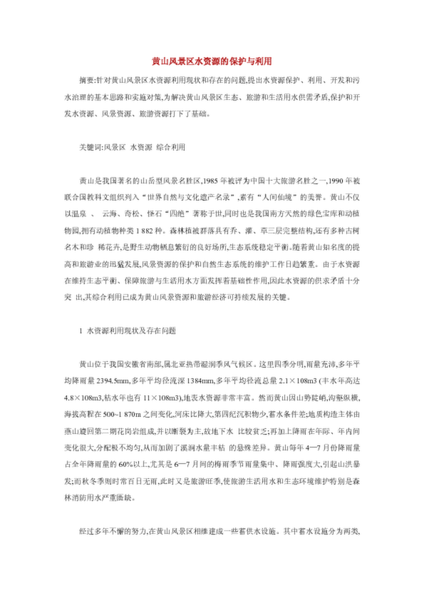 黃山風(fēng)景區(qū)水資源的保護與利用