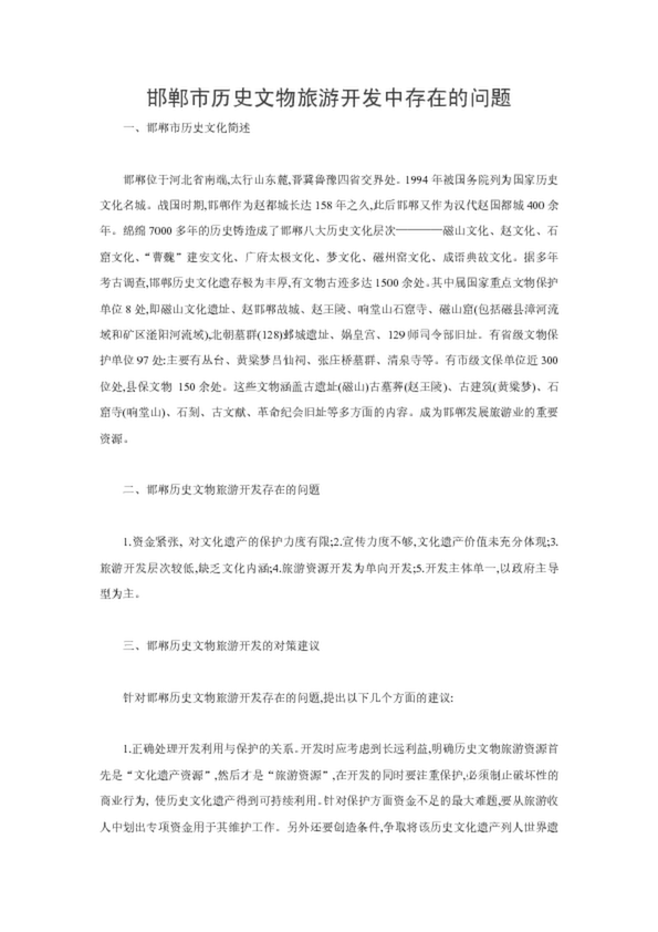 邯鄲市歷史文物旅游開(kāi)發(fā)中存在的問(wèn)題
