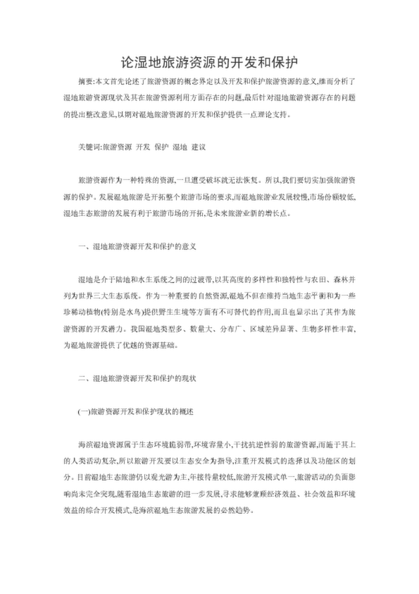 論濕地旅游資源的開發(fā)和保護