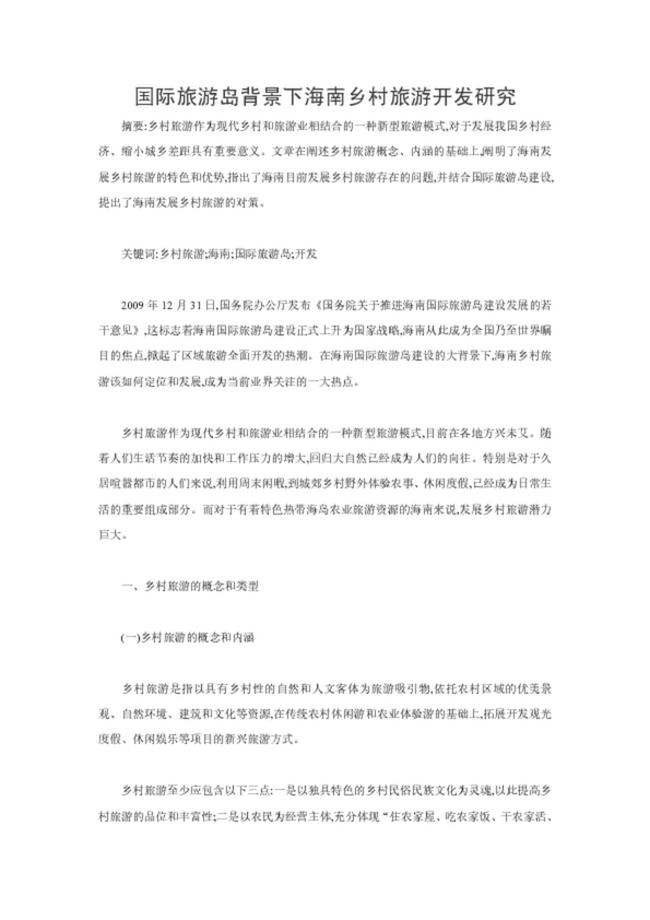 國(guó)際旅游島背景下海南鄉(xiāng)村旅游開發(fā)研究