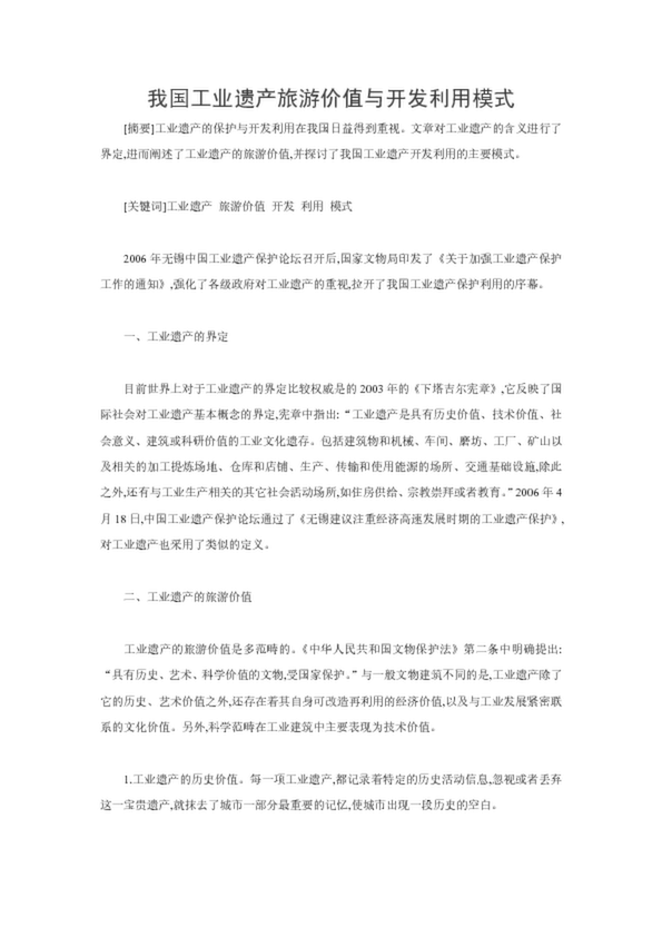 我國工業(yè)遺產(chǎn)旅游價(jià)值與開發(fā)利用模式