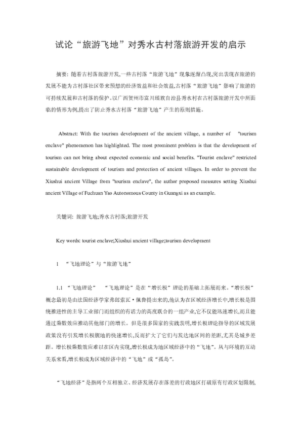 試論“旅游飛地”對(duì)秀水古村落旅游開發(fā)的啟示
