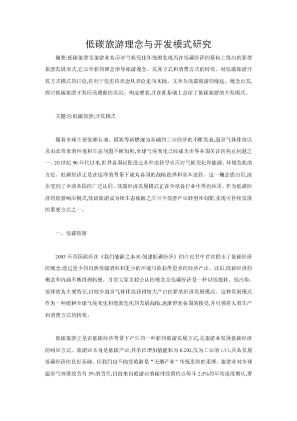 低碳旅游理念與開發(fā)模式研究