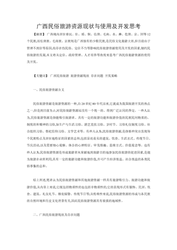 廣西民俗旅游資源現(xiàn)狀與使用及開發(fā)思考