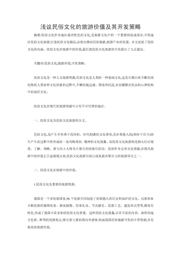 淺議民俗文化的旅游價值及其開發(fā)策略