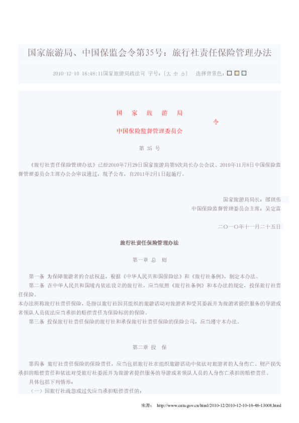 旅行社責(zé)任保險(xiǎn)管理辦法