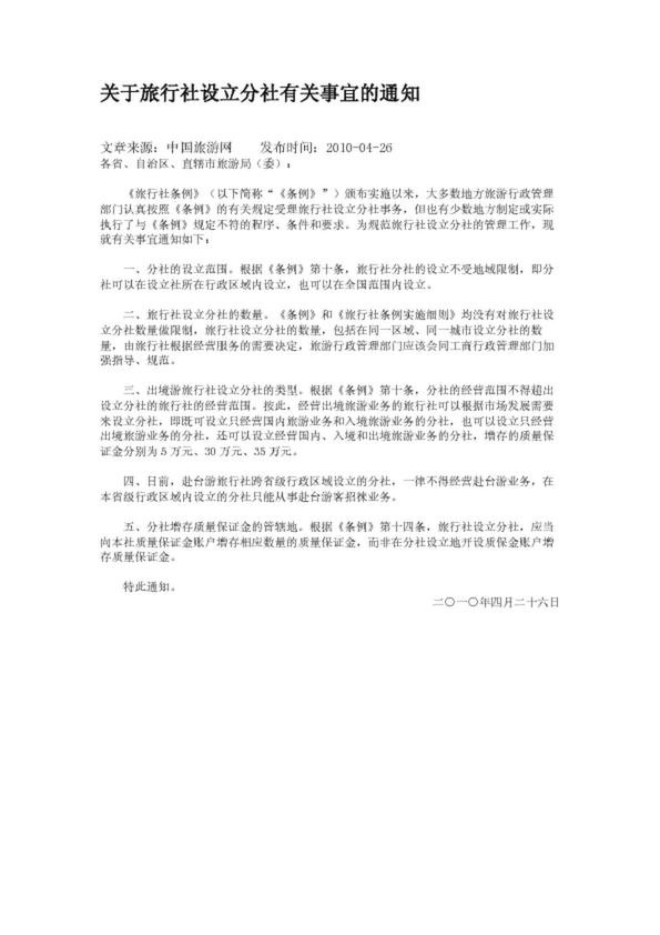 關(guān)于旅行社設(shè)立分社有關(guān)事宜的通知