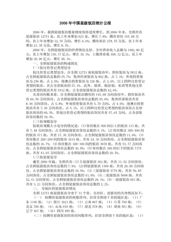 2006年中國(guó)星級(jí)飯店統(tǒng)計(jì)公報(bào)