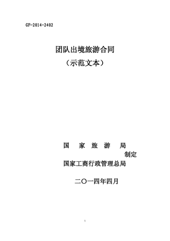 2014團隊出境旅游合同示范文本