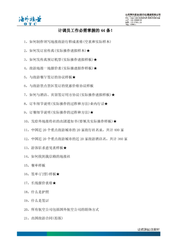 計(jì)調(diào)的工作內(nèi)容,1,如何制作填寫地接旅游行程成表格(空表和實(shí)際樣本) 2,如何發(fā)訂房傳真(實(shí)際操作虛擬樣本)★ 3,如何發(fā)傳真預(yù)訂機(jī)票(實(shí)際操作虛擬...