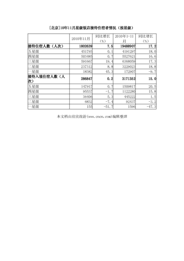 [北京]10年11月星級(jí)飯店接待住宿者情況(按星級(jí))(57.68KB)