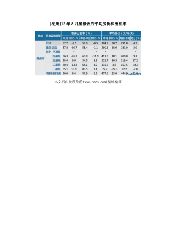 [湖州]12年8月星級(jí)飯店平均房?jī)r(jià)和出租率