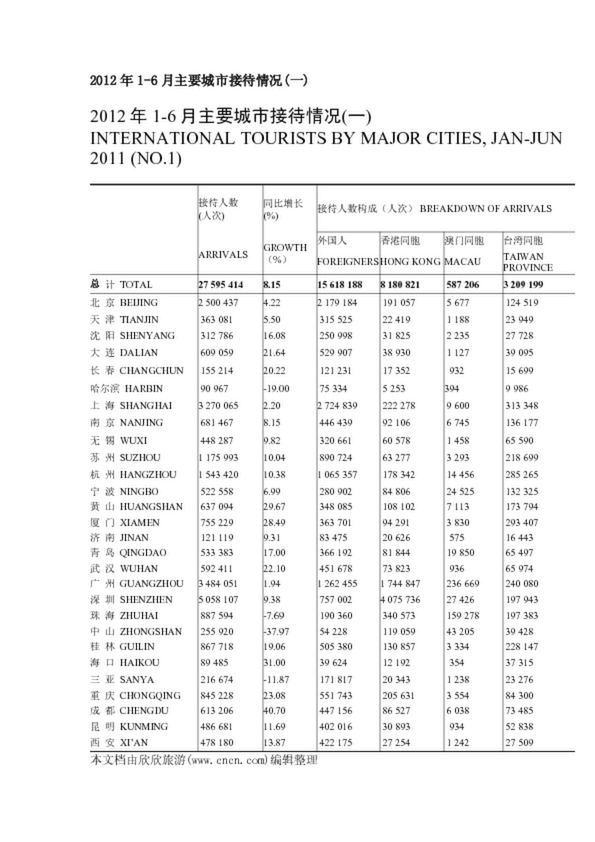 2012年1-6月主要城市接待情況(一)(84.72KB)