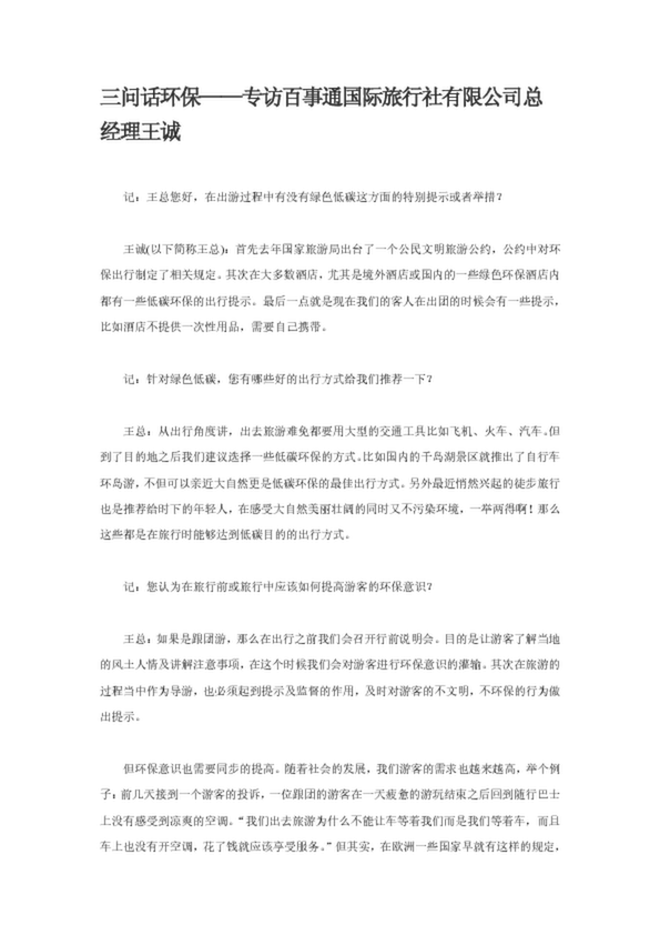 三問話環(huán)!獙TL百事通國(guó)際旅行社有限公司總經(jīng)理王誠(chéng)