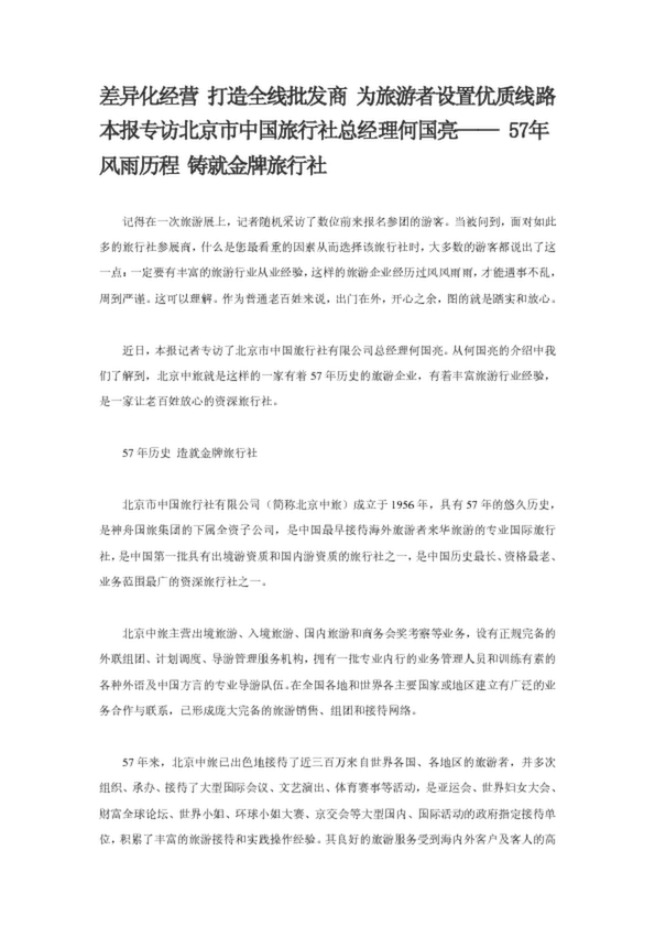 專訪北京市中國旅行社總經(jīng)理何國亮