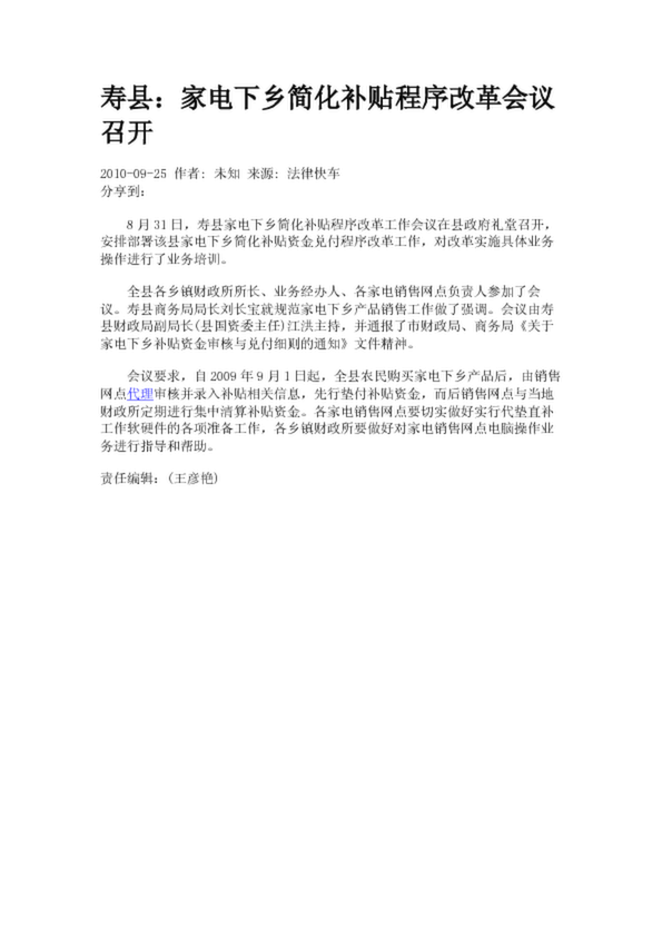 壽縣:家電下鄉(xiāng)簡化補(bǔ)貼程序改革會(huì)議召開