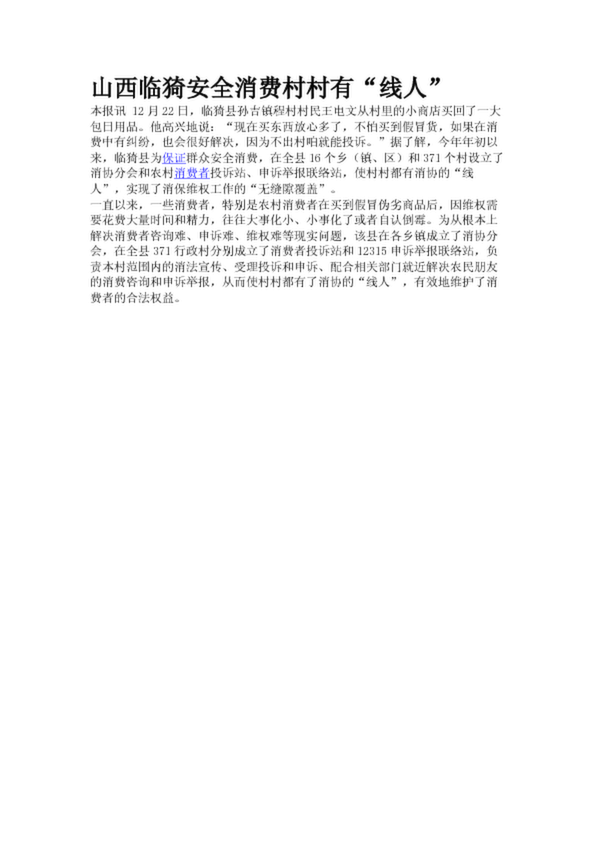 山西臨猗安全消費(fèi)村村有“線人”
